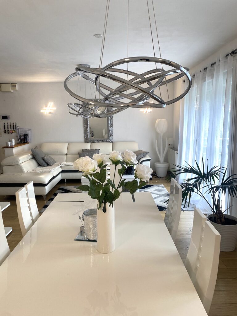 Chauffage et production d’eau chaude électrique, volets roulants électriques, parquet massif bambou. Décoration soignée, prestations de qualité, en parfait état.