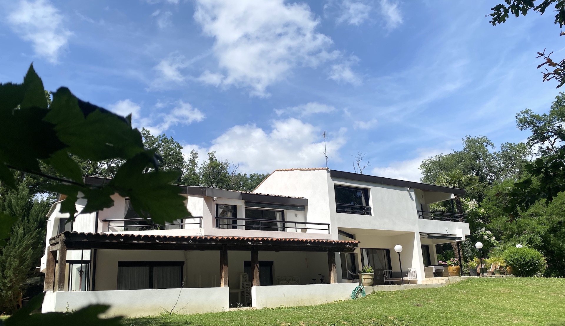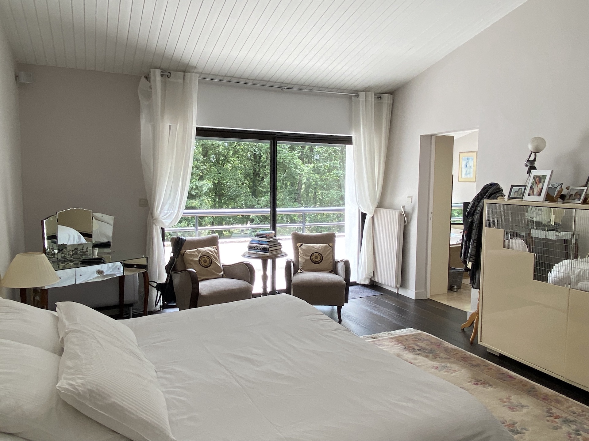 Au calme et sans avis à vis, implantée au coeur d’une parcelle de 12 HECTARES (de parc et de bois) piscinable (Permis accordé), Villa contemporaine d’Architecte de 9 pièces, de construction traditionnelle de 1983, d’une surface d’environ 405 m2.