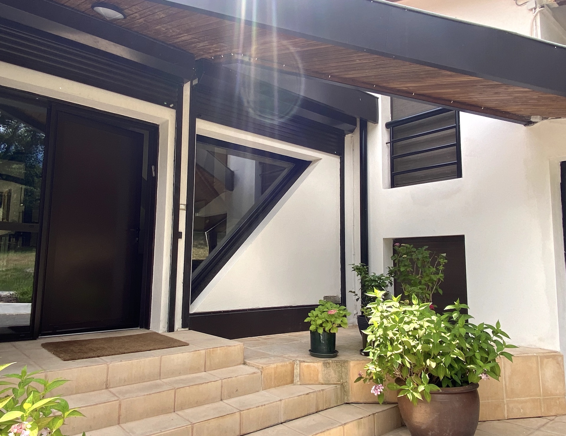 Menuiseries double vitrage aluminium noir avec moustiquaires intégrées, volets roulants électriques centralisés, chauffage au gaz de ville, assainissement autonome (Fosse septique),sols marbre dans les pièces de vie et parquet acajou dans les pièces de nuit…