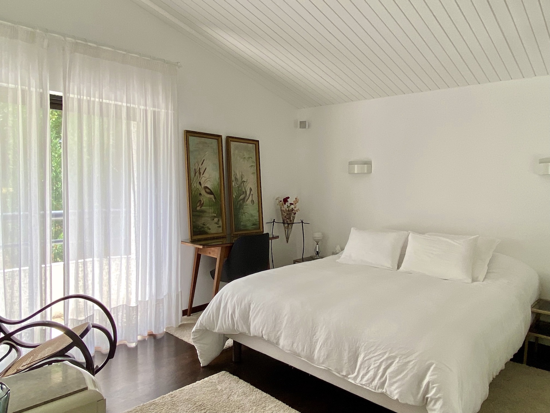 A l’étage; 4 chambres (2 avec balcons) dont une suite parentale avec salle de bain privative et dressing, une grande mezzanine avec vide sur salon (pouvant être aménagée en chambres supplémentaires), un WC séparé.