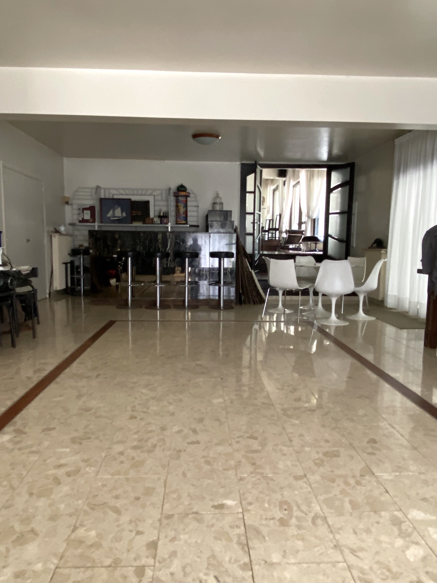 En rez-de-chaussée; un vaste hall d’entrée, une grande cuisine entièrement meublée et équipée ( cuisinière professionnelle de type Piano, hotte professionnelle, four, four/micro onde, cheminée/barbecue…) de plus de 40 m2 donnant sur terrasse couverte, un salon/salle à manger de plus de 70 m2 donnant sur jardin avec plafond cathédrale et cheminée, un deuxième salon/ou salle de réception d’environ 70 m2 sur jardin et terrasse couverte (180m2), une chambre 1/ou bureau, un WC séparé avec lavabo, une buanderie, une chaufferie, un Hammam, un Sona.