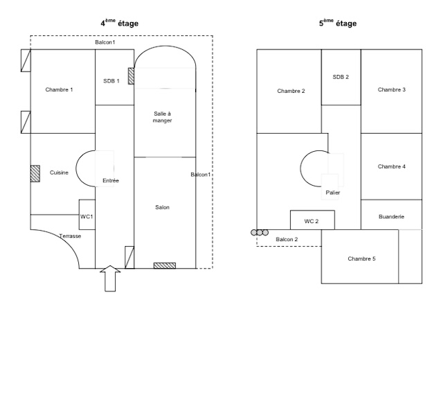 - 1 balcon en enfilade tournant sur rue